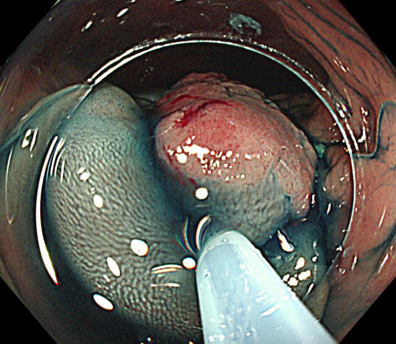 10mm以上の大腸ポリープを切除する方法です。以前は後出血および穿孔の偶発症に備えて1泊2日の入院で行っていました。しかし、新型コロナウイルス感染症による病床数の不足を考慮して、2022年3月からは消化器科では大腸EMRを日帰り手術で行っています。切除後の潰瘍底をクリップで縫縮することにより、偶発症の予防に努めています。2022年3月から9月までの約半年間で、日帰り手術の大腸EMRを88件行いました。偶発症は後出血の1例のみでした(抗凝固薬内服中の患者さんでした)。