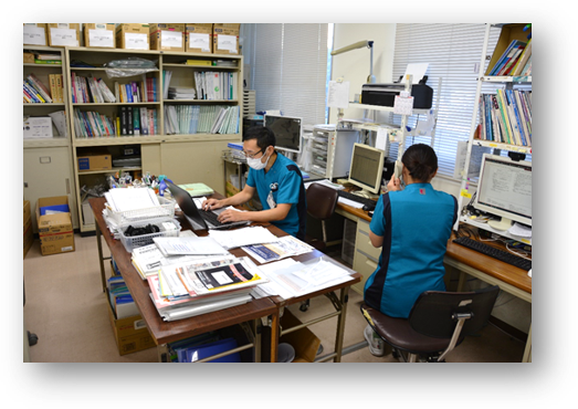 医薬品情報管理室には専従の薬剤師を1名置き、医薬品全般の情報収集、分類、評価を行い、必要な情報はタイムリーに医師や看護師などに提供しています。
