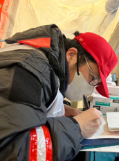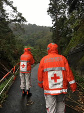 赤十字の使命である救護活動に、薬剤師も他職種と協働して関わっています。