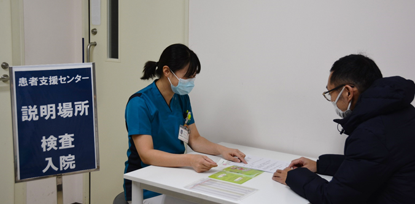 支持緩和医療科では、診察前後のみならず、診察時にも看護師と共に同席しております。